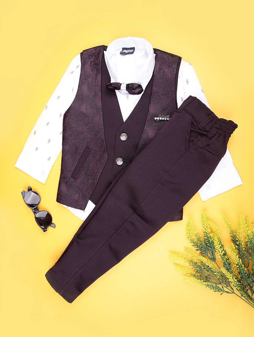 - » boys self design trouser & shirt with waist coat set