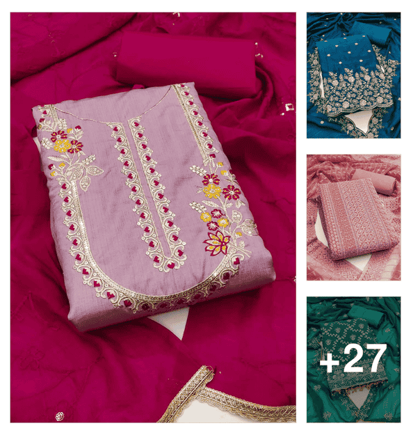 women solid wiith work embroidered unstitched suit set