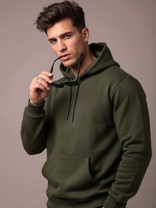 men solid long sleeve hooded sweatshirt