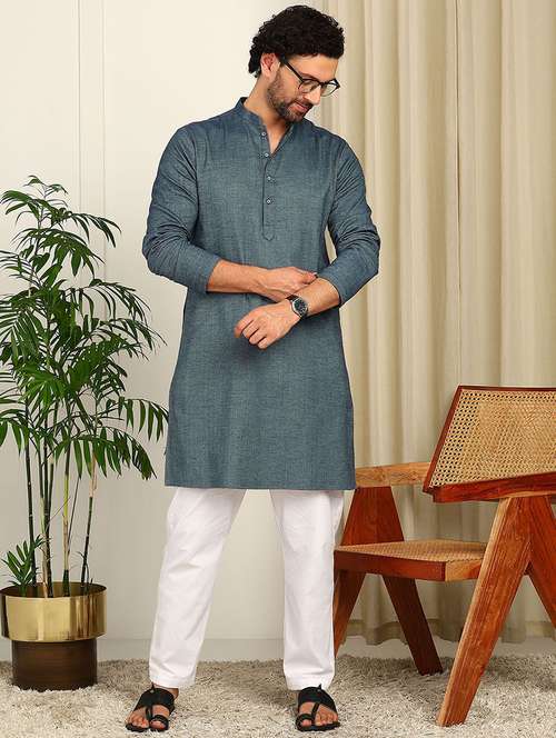 men mandarin neck long sleeve kurta