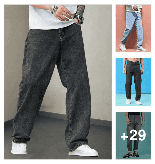 men solid mid rise baggy jeans