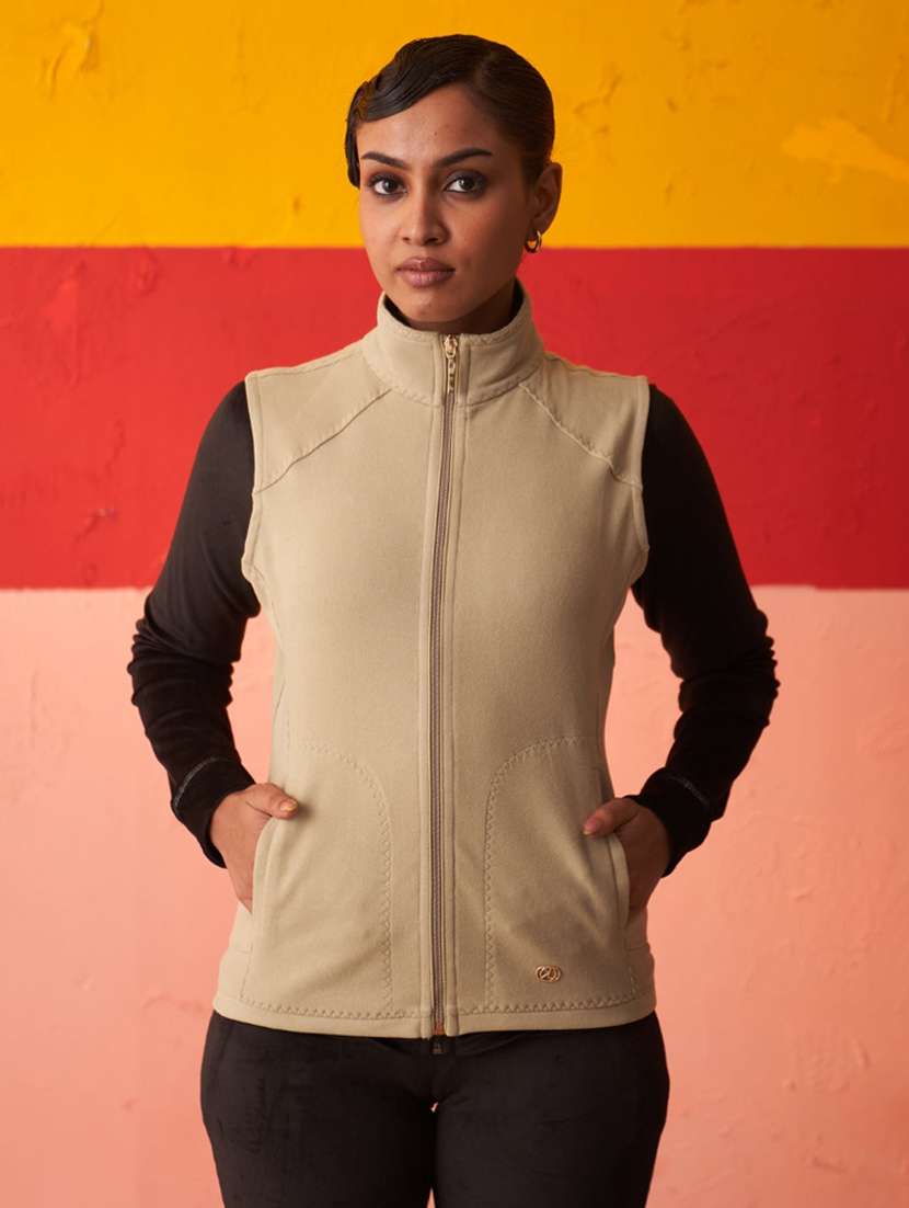 women beige wool regular jacket