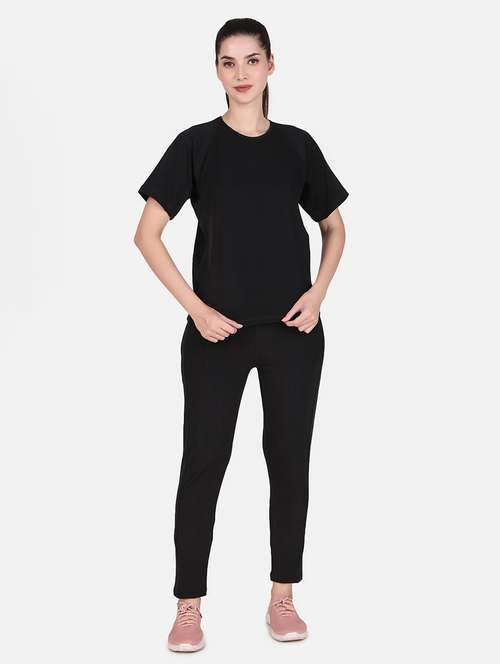 women black solid active wear co-ords set