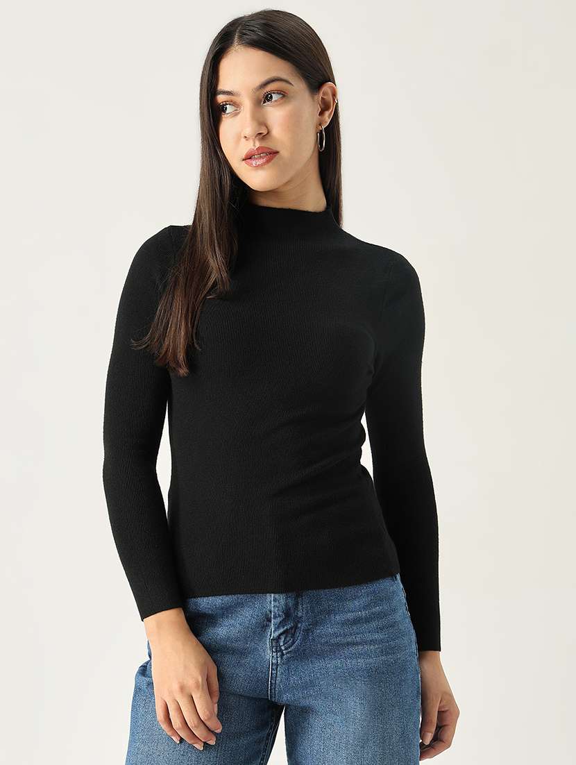 - » women black solid regular top