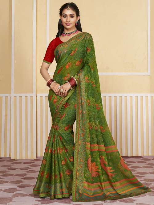 women green printed saree with blouse