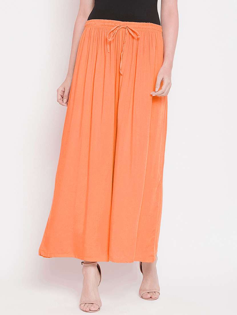 Castle Lifestyle Peach Colour Rayon Flared Palazzo comes with an elasticated waistband and drawstring closure