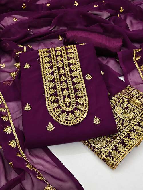 - Look ultra gorgeous in unstitched suits from Leeli Peeri Designer and grab these beautiful suits in purple colour.