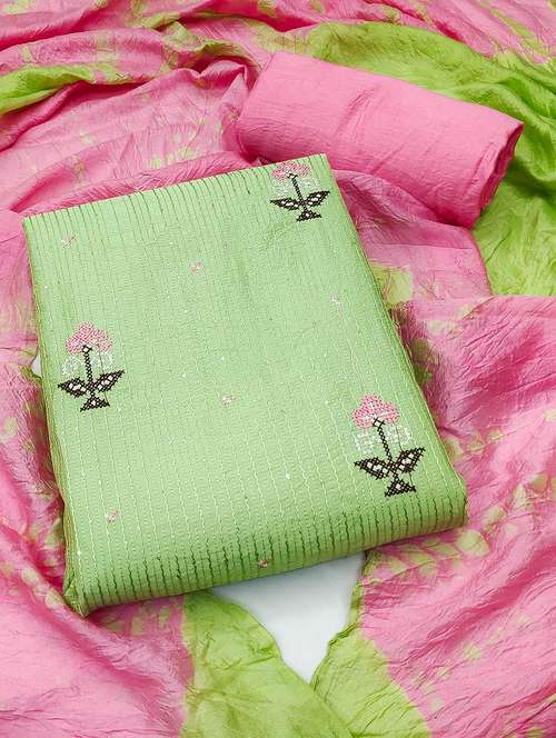 women solid with work embroidered unstitched suit set - 22018286 - Very Small Image - 1