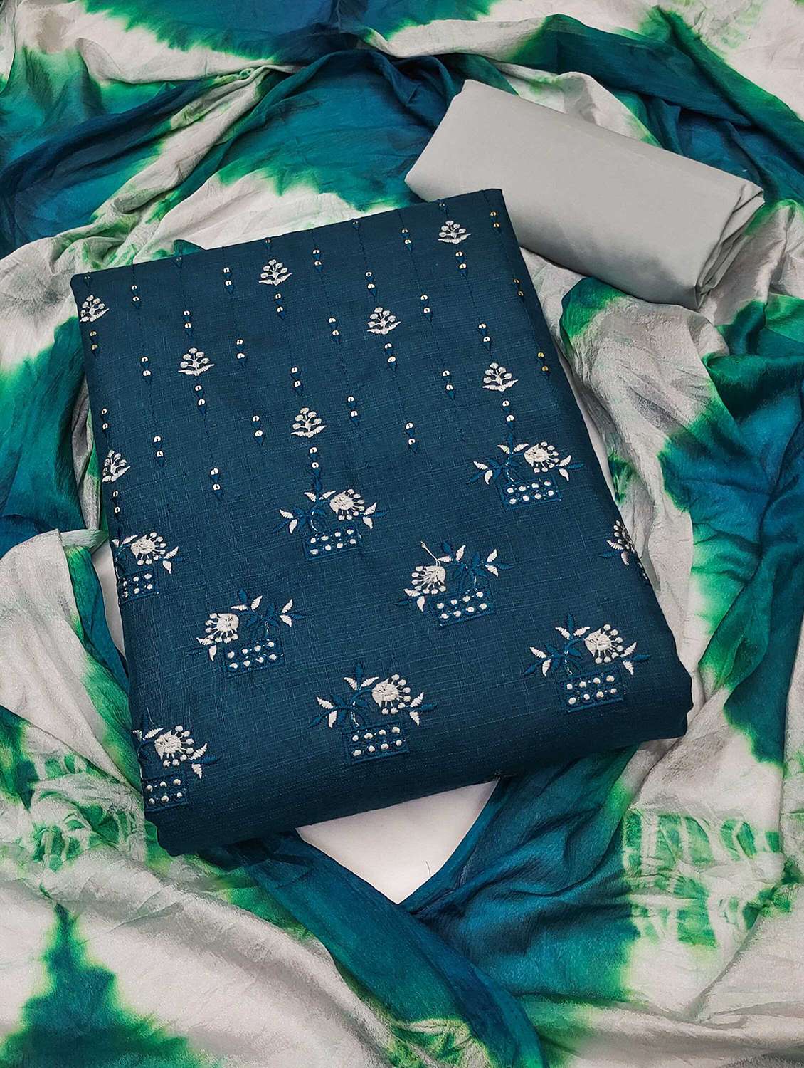 women solid with work embroidered unstitched suit set - 22018605 - Very Small Image - 1