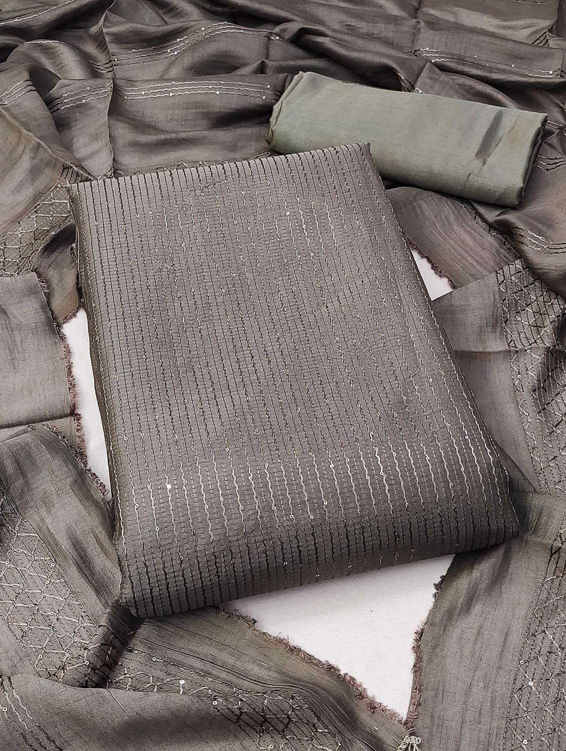 women solid with work embroidered unstitched suit set - 22018612 - Very Small Image - 1
