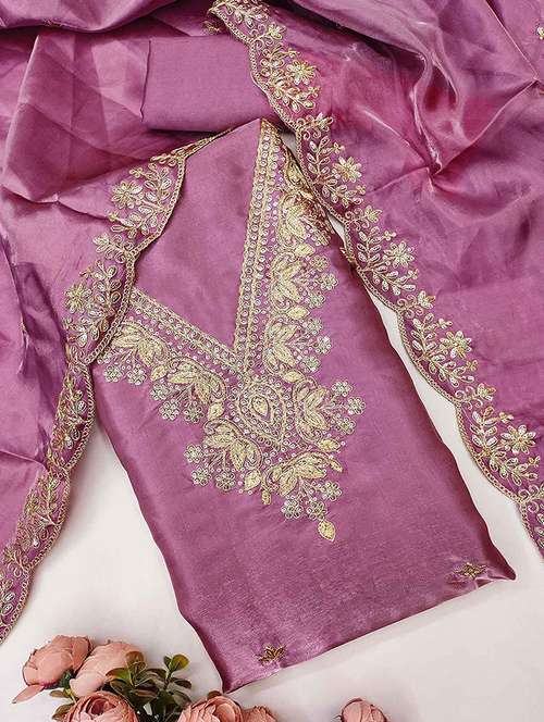 - Look ultra gorgeous in unstitched suits from Peachmode and grab these beautiful suits in purple colour.