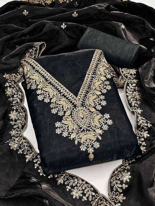 women solid with work unstitched suit set