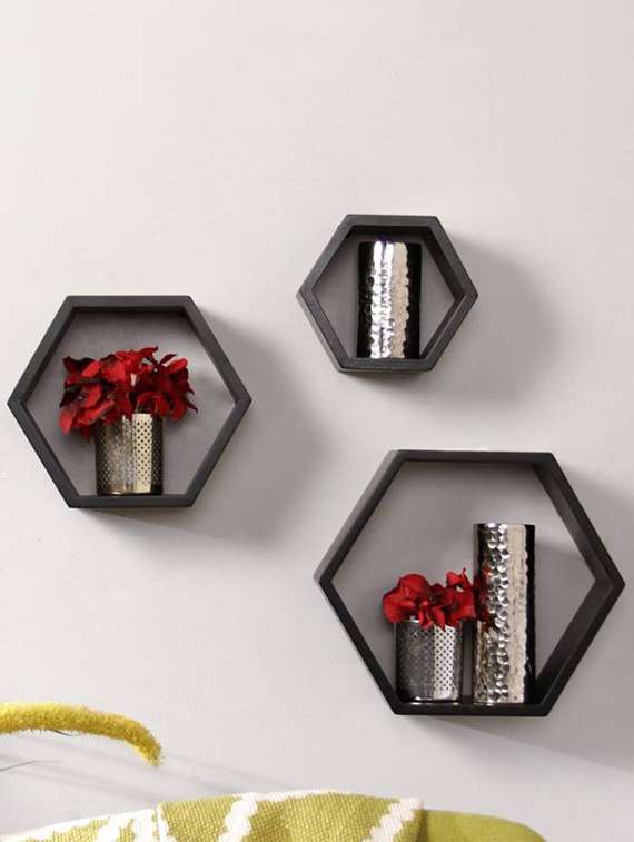- » hexagon shape storage wall shelves set-3 -black