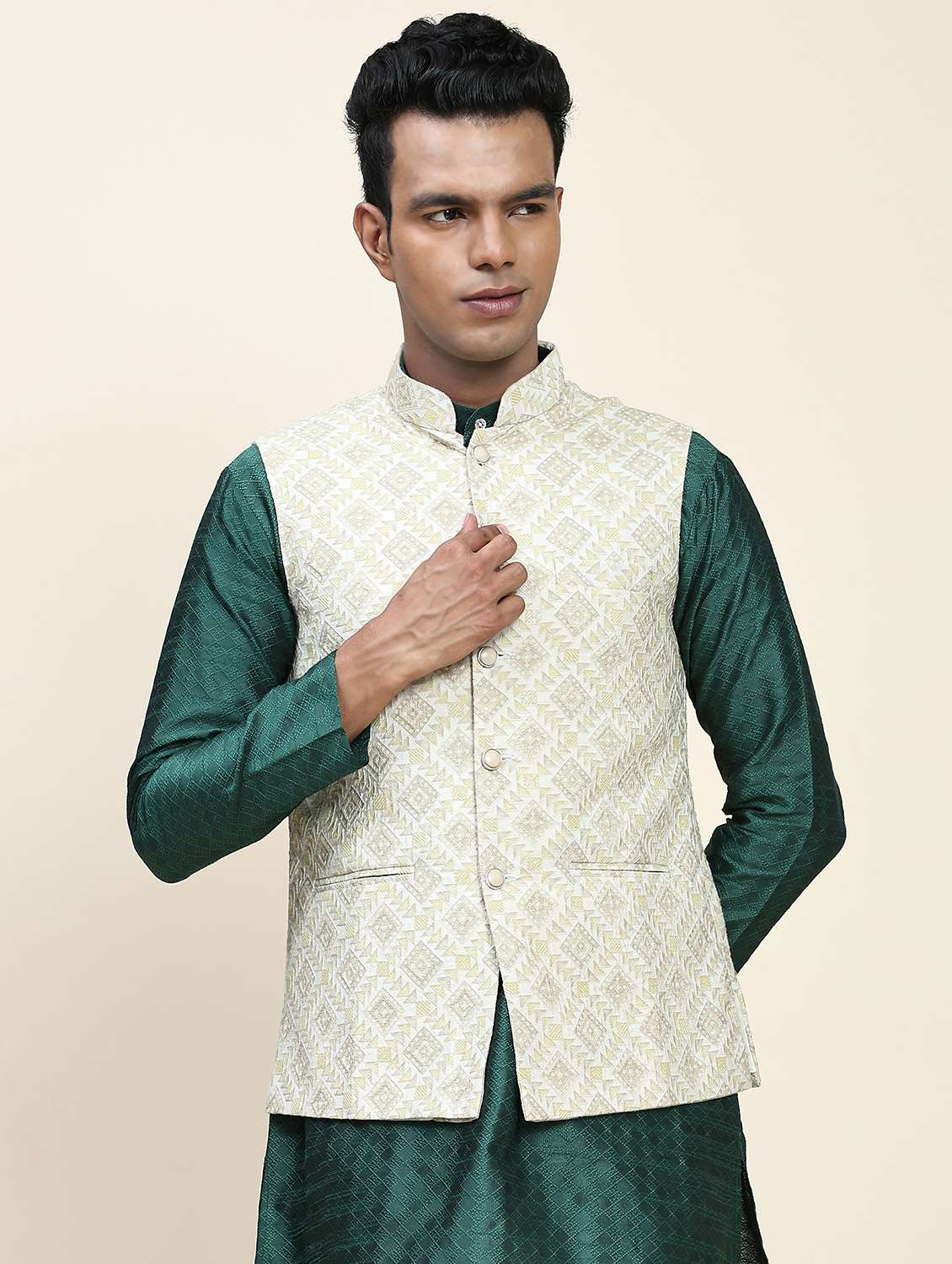 - Redefine your traditional looks with S sizes of Nehru jackets at ₹3500 .