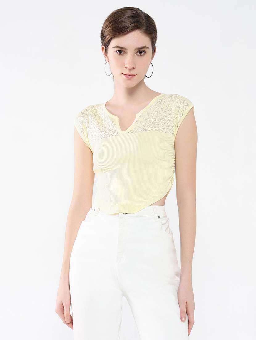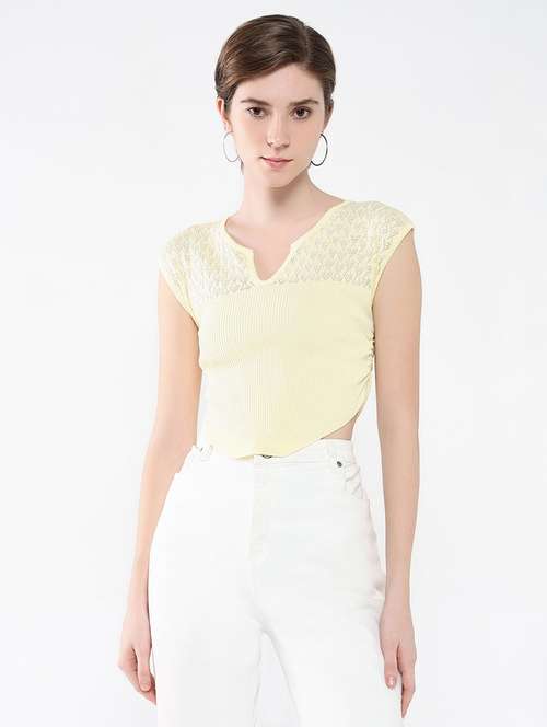 - » women yellow self-designed crop top