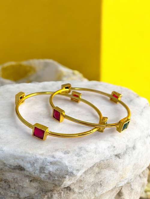 Elevate your jewelry collection with our exquisite gold-plated bangles, featuring intricate designs and a luxurious finish. Crafted from high-quality materials, these bangles are lightweight and comfortable for all-day wear. Available in various styles, including antique, floral motifs, and contemporary designs, they effortlessly complement any outfit, from casual to formal. Each piece is carefully handcrafted by skilled artisans, ensuring uniqueness and durability. Ideal for special occasions or everyday elegance, these bangles also make a perfect gift for loved ones. Add a touch of timeless beauty to your wardrobe with our stunning gold-plated bangles today!
