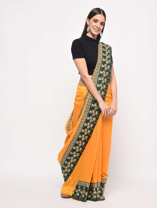contrast embroidered border saree
