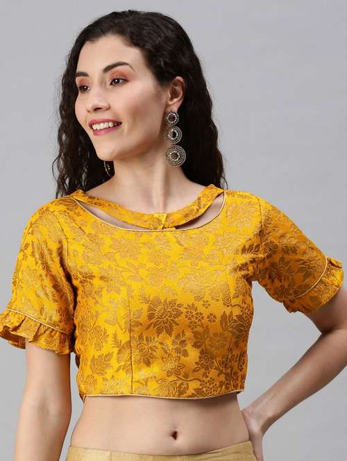 - » mustard yellow and golden woven design saree blouse