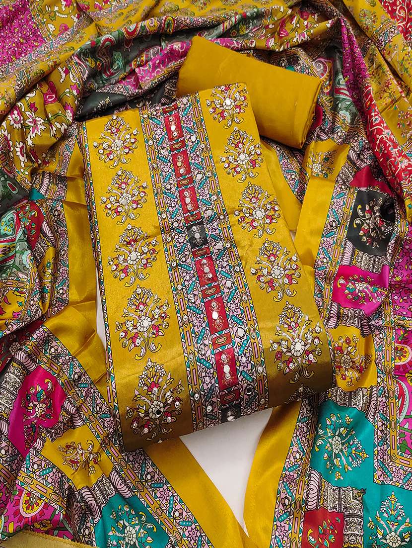 women printed mirror work unstitched suit set