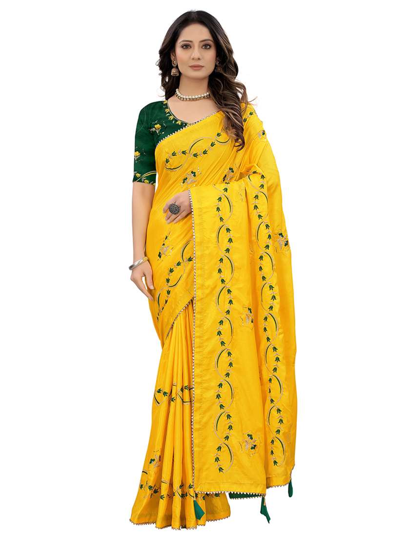 Sarees Fabric :Dola Silk With Heavy Lace, Blouse Fabric : Banglory Silk With Embroidered, Actual Color : As Par Image, Sarees Length : 5.50 Mt, Blouse Size : Full Stitching 36\ , Work : Embroidered work with lace Pattern : Designer Saree
