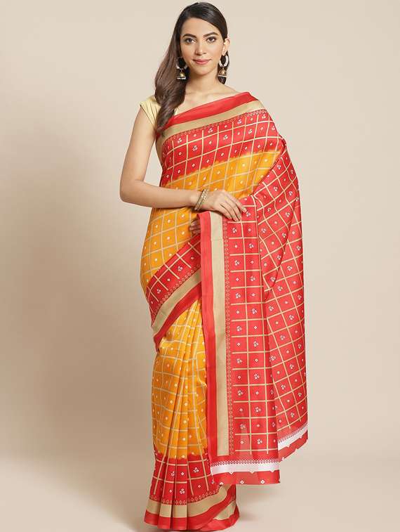 - » women's bandhani mustard colored saree