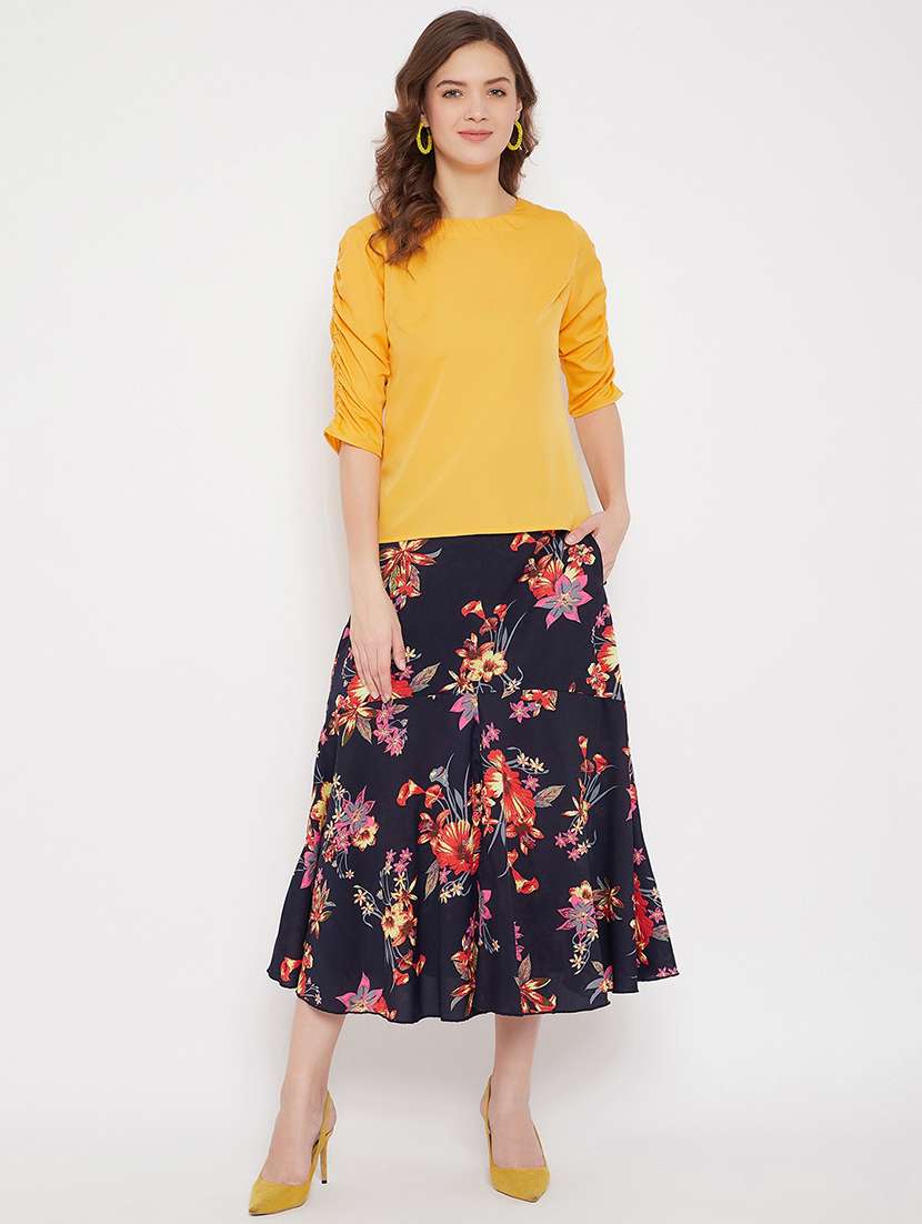 solid top & printed skirt set