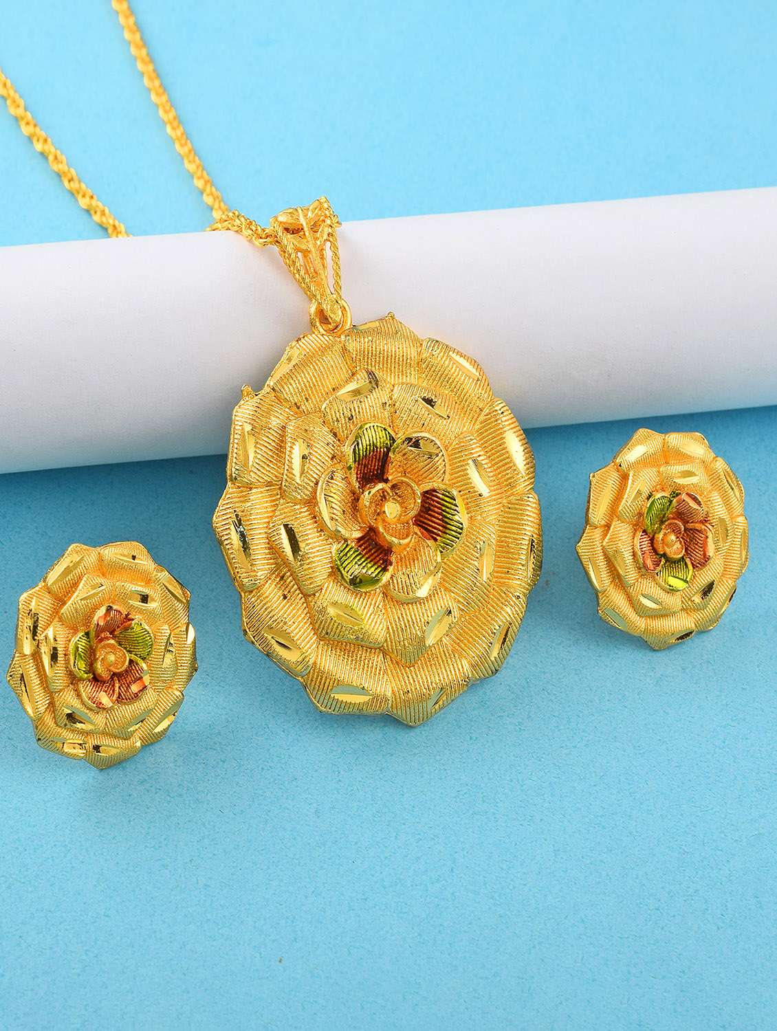 Goldplated Dual tone Meenakari 3D Rose Pendant Set