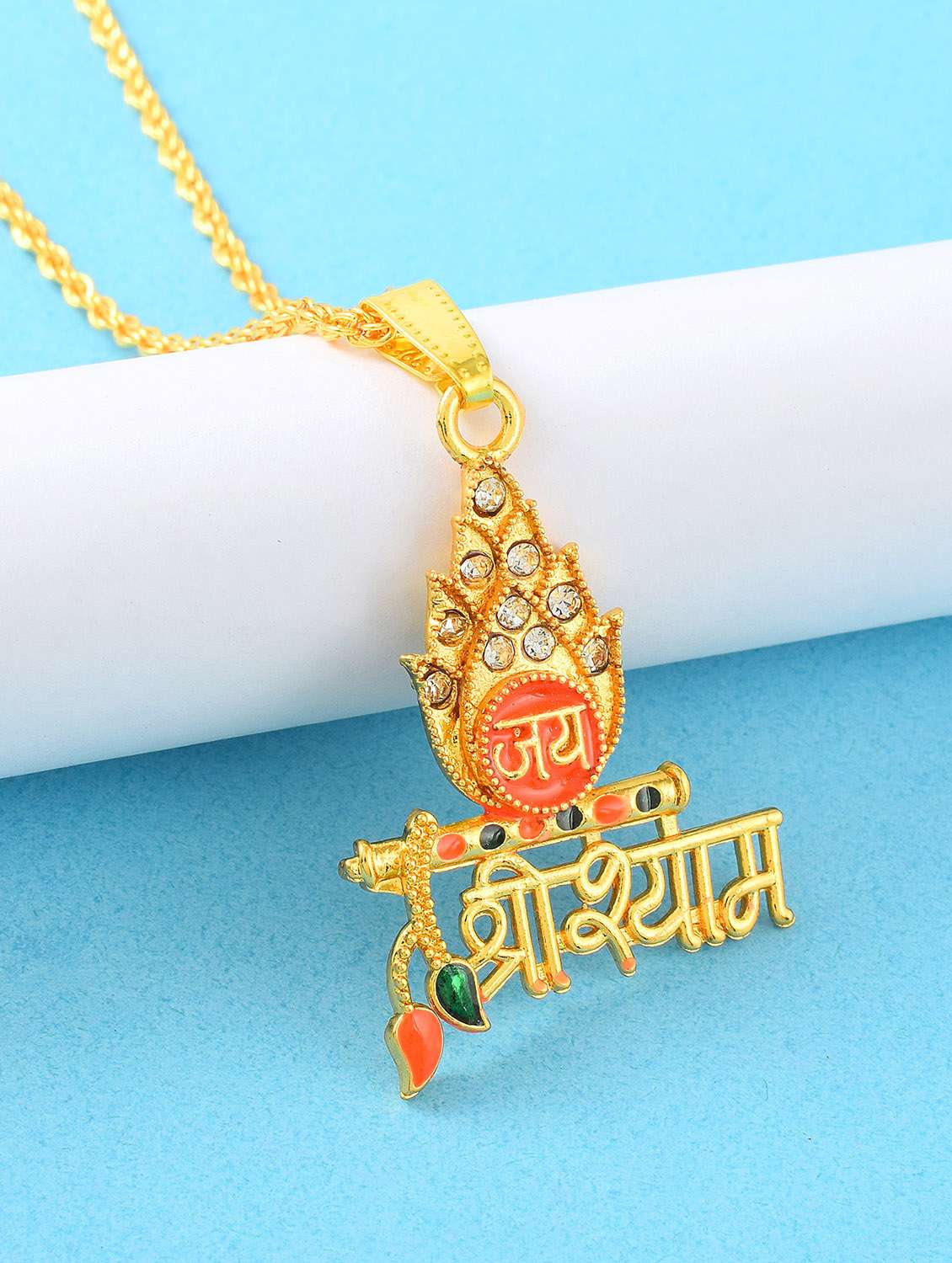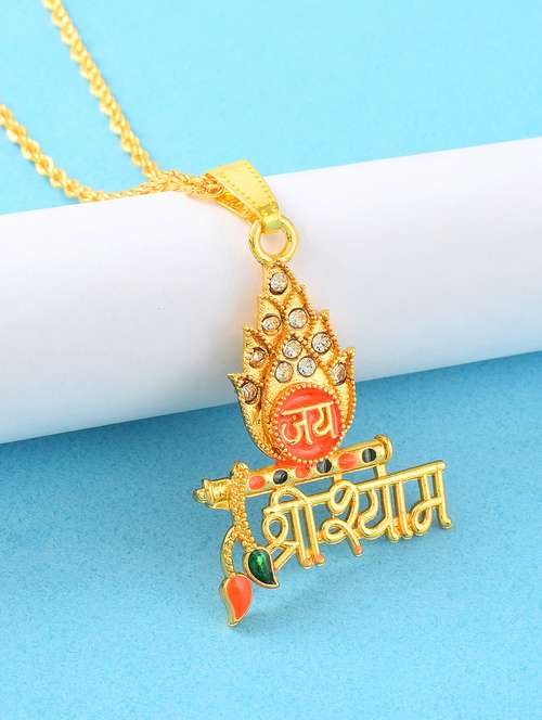 Goldplated Meenakari Jai Shri Shyam Khatu Shyam Chain Pendant Men Women
