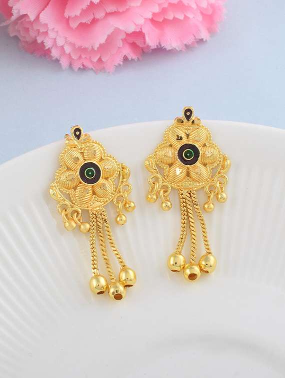 Brass Goldplated Handmade Meeneakari Tassled earring stud for Women