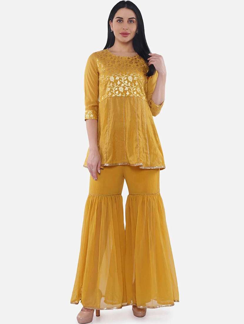 women mustard round neck kurta sharara set - 21526634 - Very Small Image - 1