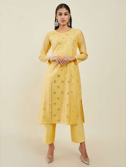 yellow self design suit set