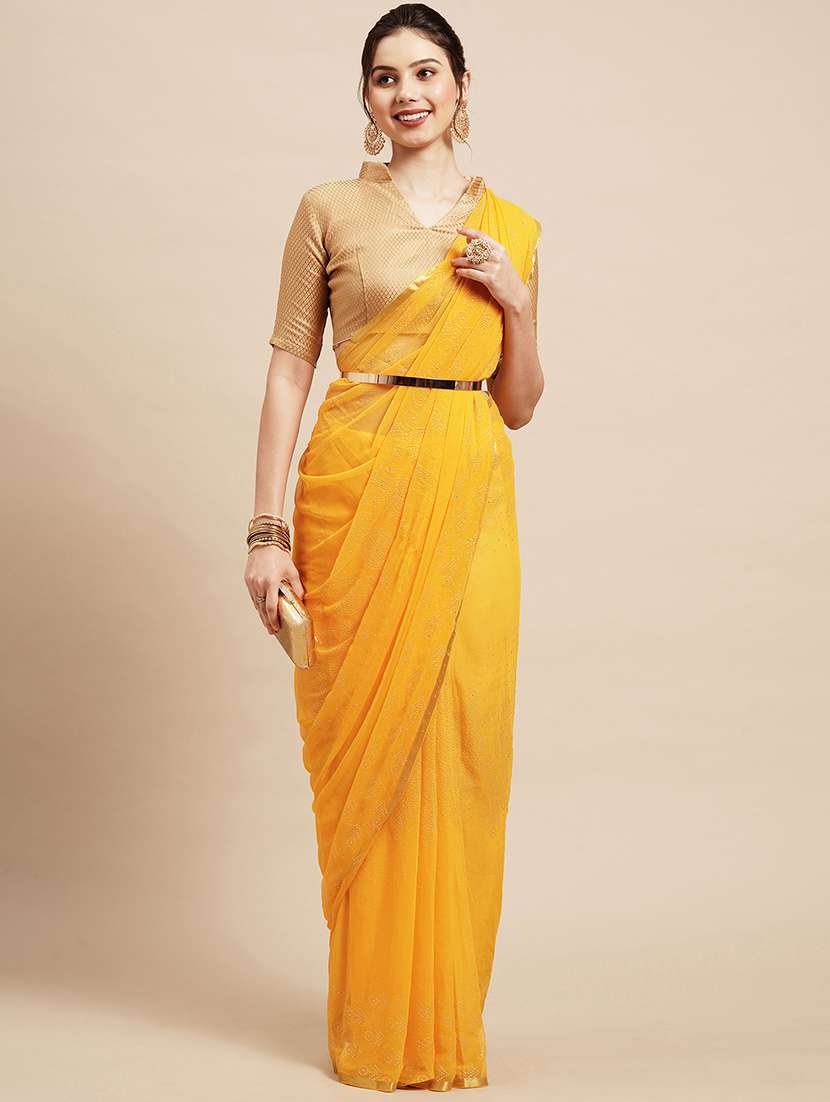 - » yellow chiffon plain saree