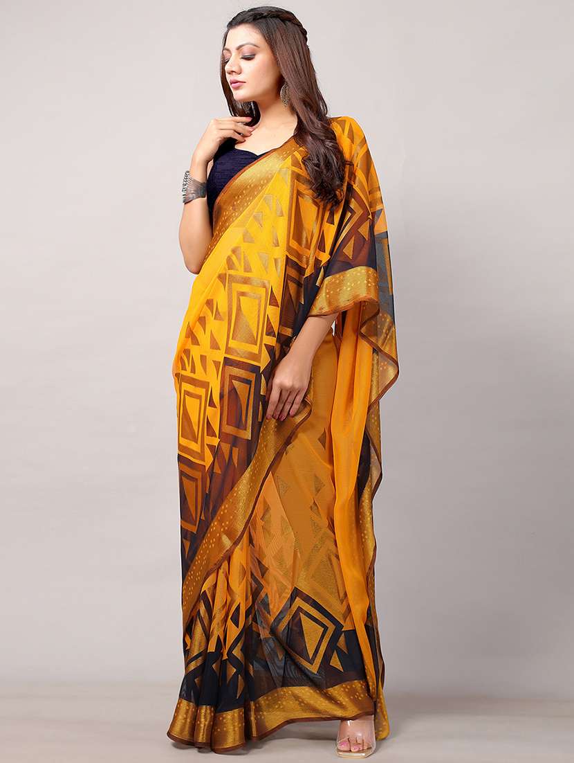 - » yellow chiffon printed saree
