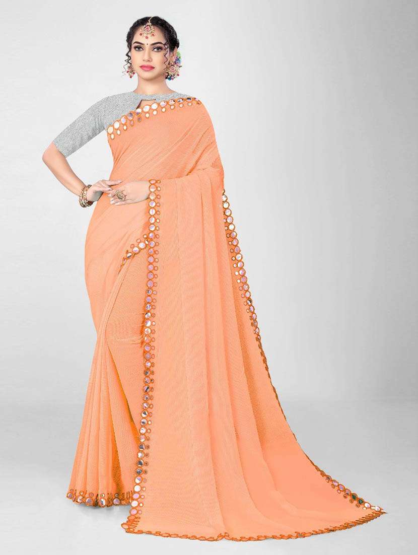 women solid with bordered saree with blouse - 18907491 - Very Small Image - 1