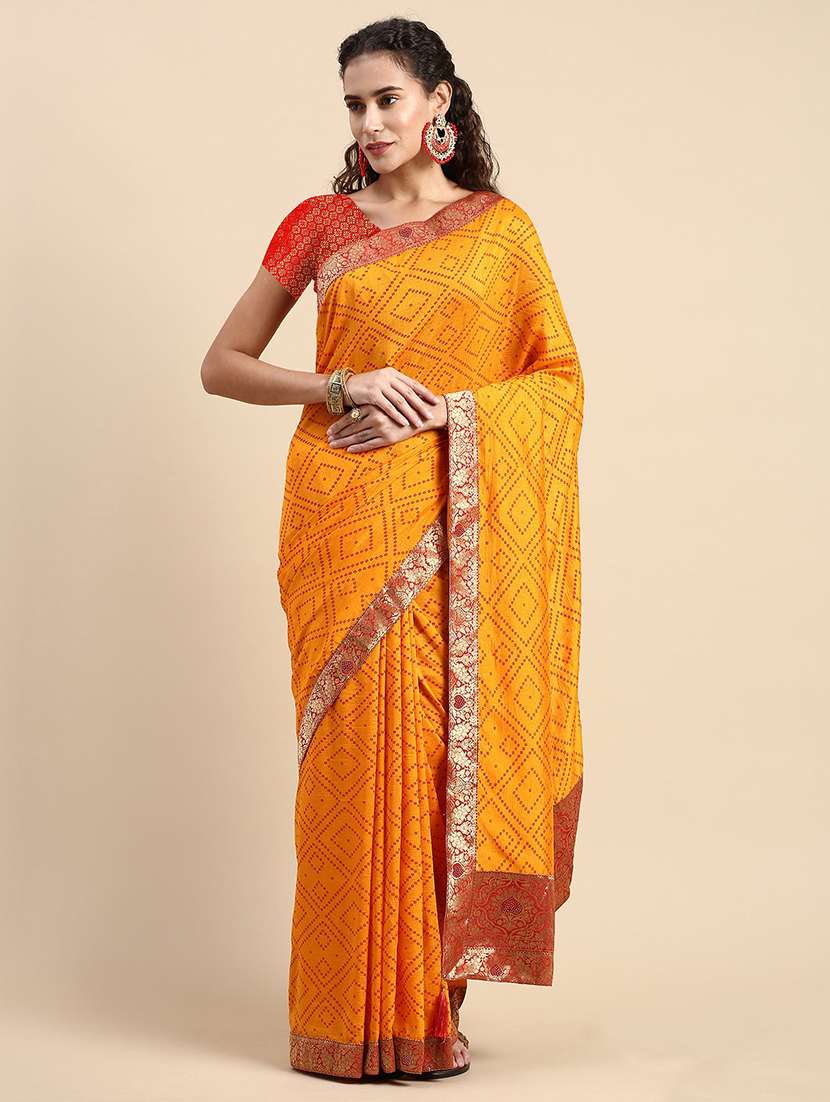 - » women bandhani printed lace work saree with blouse