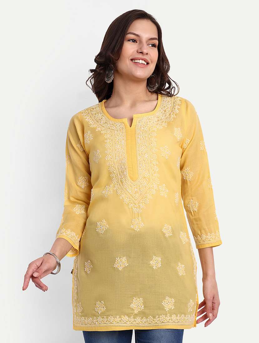 - » women notch neck chikankari work straight kurti