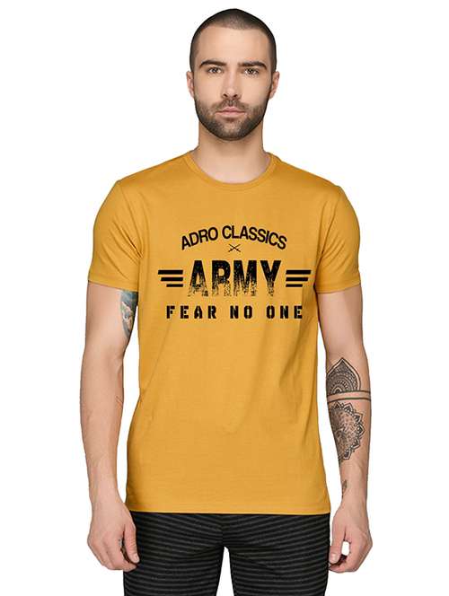 yellow typographic chest print t-shirt