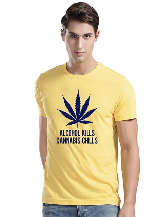 - » yellow typographic chest print t-shirt