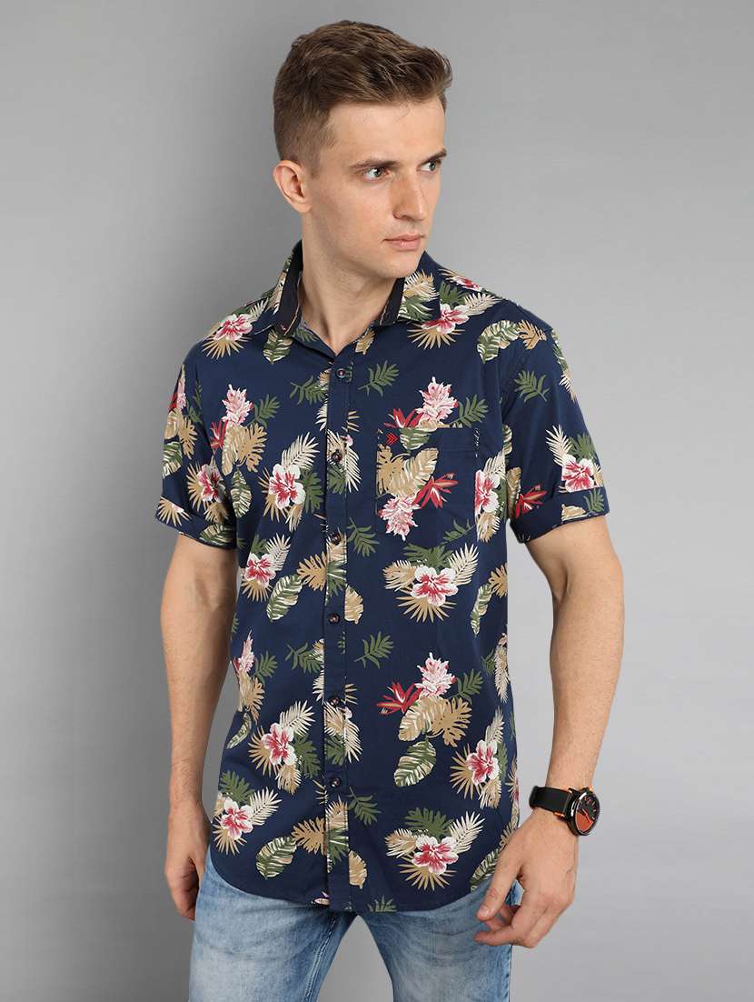 - » navy blue floral print casual shirt