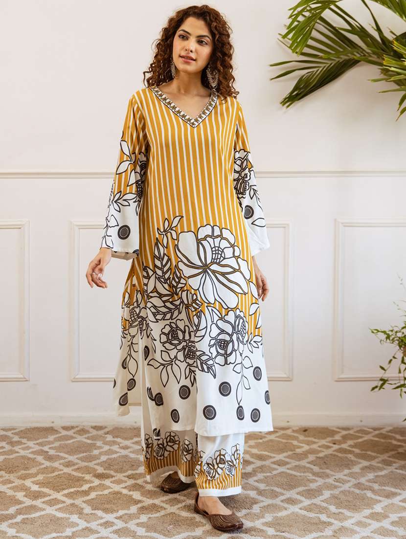 - » women printed long sleeve kurta palazzo set