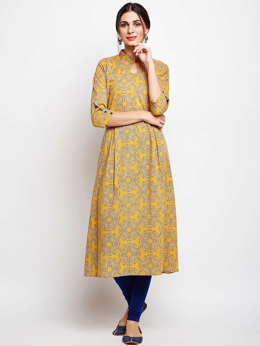- » printed sleeves detail a-line kurta