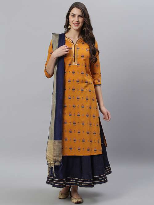 - » yellow cotton kurta skirt set