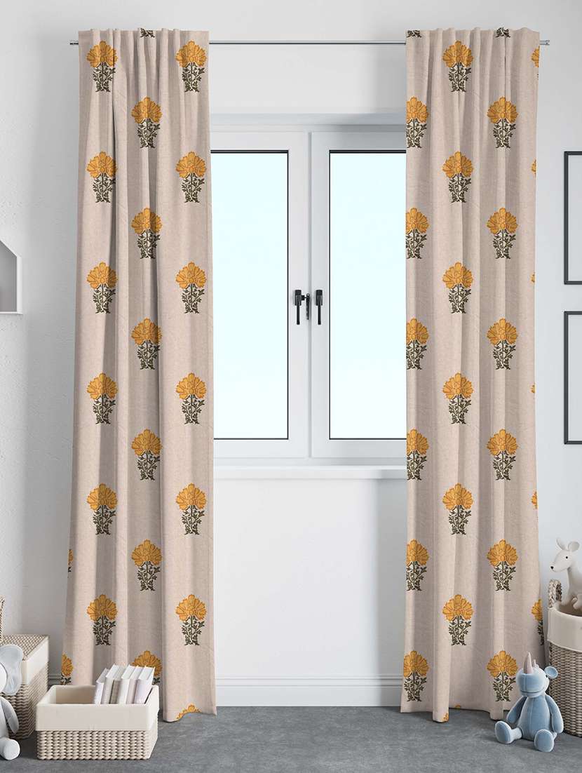 beige flower printed curtains