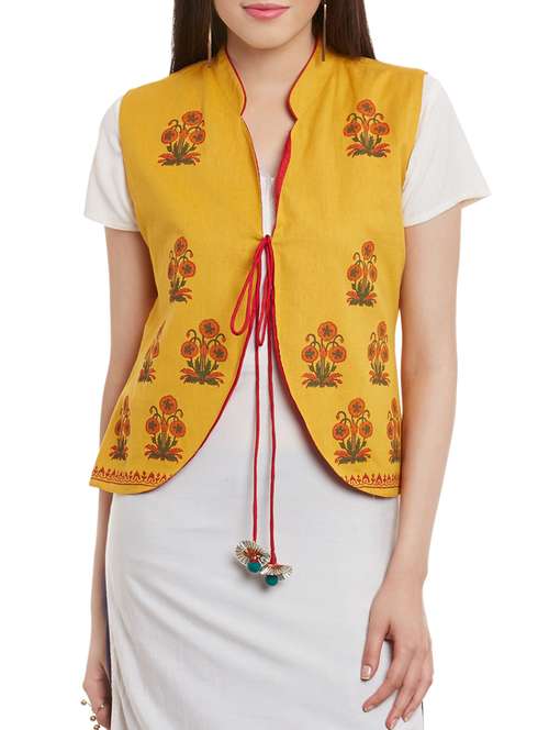 - Add yellow range of jackets to accentuate your traditional outfits made of natural cotton materials, starting at ₹649 price ranges.