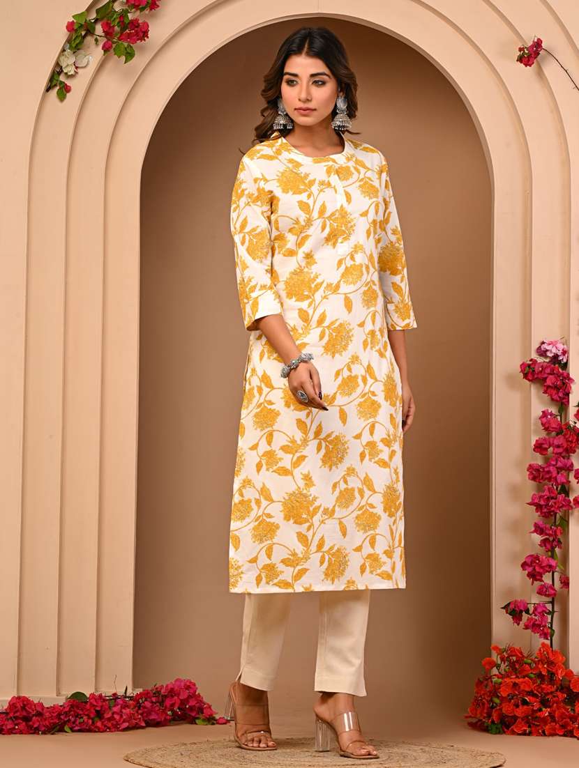- » women white floral straight kurta