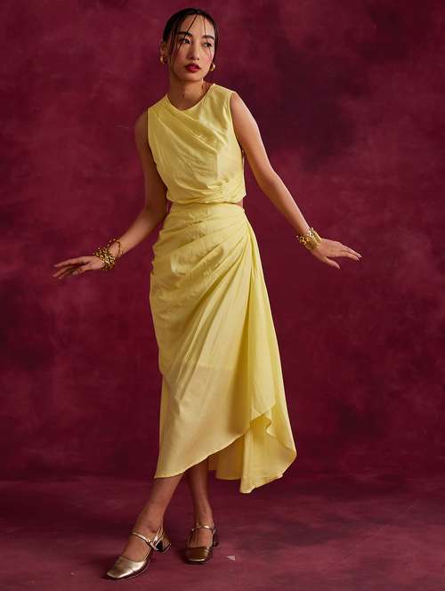 - Skirt lovers often have a hard time looking for that one skirt which literally blows their mind! Well, at LimeRoad you can browse through skirts from ABHISHTI and look cheerful in yellow colours.