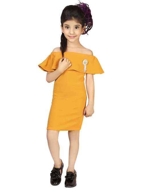 - » girls solid off shoulder dress