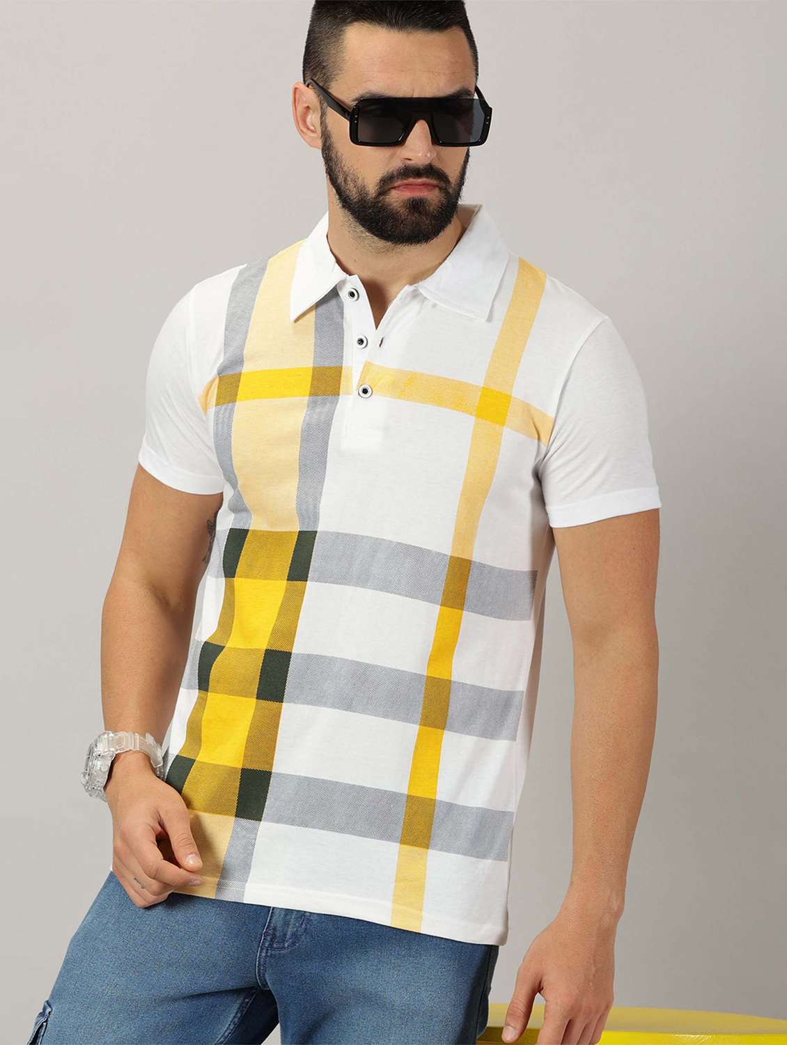 men checkered cotton polo t-shirt