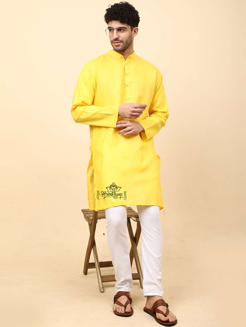 - » yellow cotton blend kurta pyjama ethnic wear set