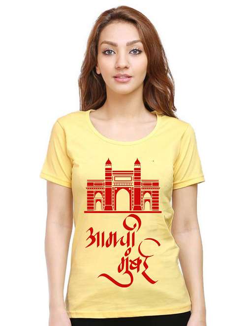 yellow front printed casual t-shirt
